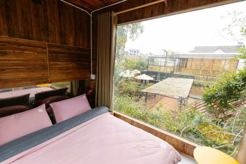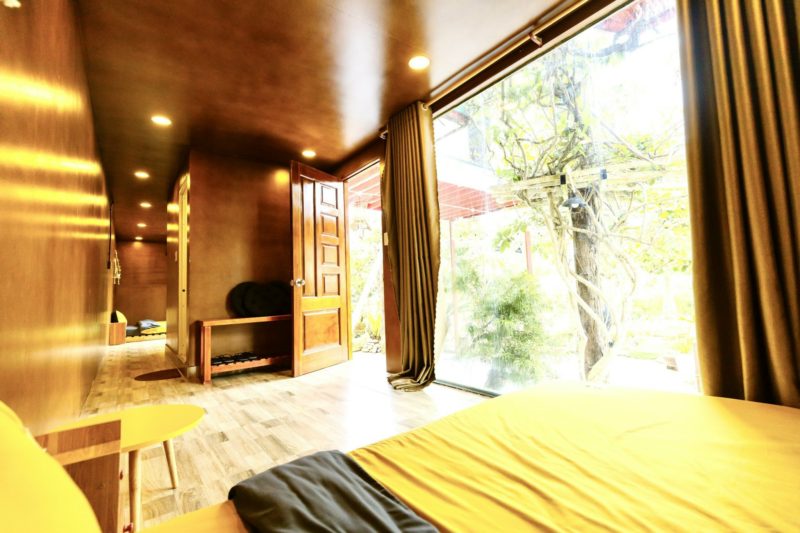 Thiết kế phòng trẻ trung, năng động view kính nhìn ra nhà lồng, hồ cá koi, khuôn viên sân vườn rộng rãi