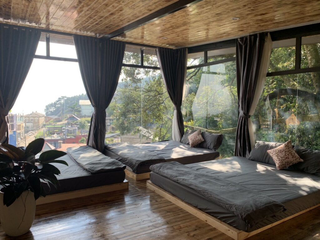 Nguyên căn nhà kính 2 tầng, 2 phòng ngủ khép kín bao gồm 6 giường 1m8*2m, điều hòa , nóng lạnh,..