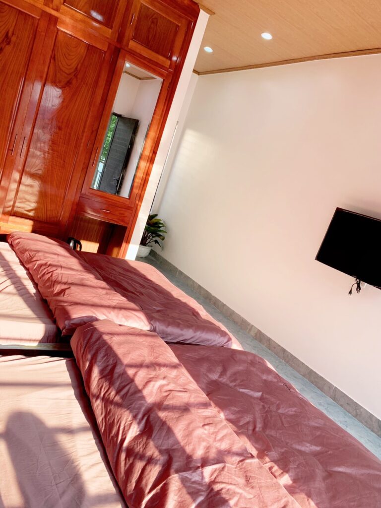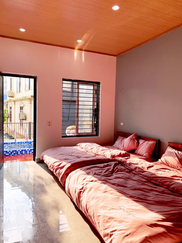 - 4 phòng ngủ khép kín, nóng lạnh, điều hòa 2 chiều ( 1p1g, 3p2g), có thêm 1-2 đệm phụ 1m6 nếu đoàn đông