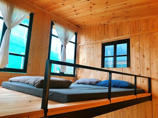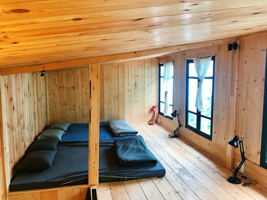 Tầng 2: 03 giường đệm lớn với nhiều cửa sổ kính, đèn ngủ quây quần ấm áp.