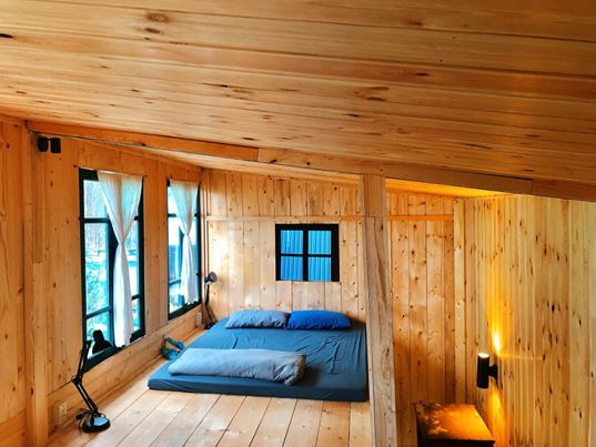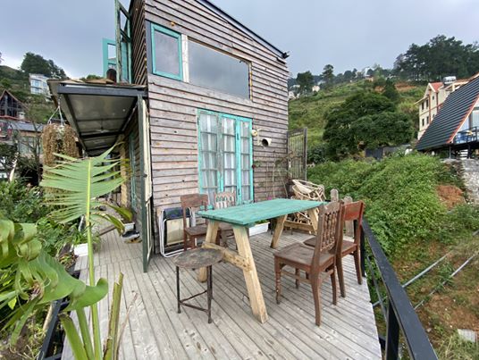 Nhà gỗ nhỏ (nguyên căn hai tầng) là homestay Vintage với nhiều cửa sổ kính nhỏ xinh, view thung lũng ngút ngàn, trước nhà là 1 ban công rộng cực chill để đọc sách, picnic tắm nắng, chuyện trò ngắm cảnh.