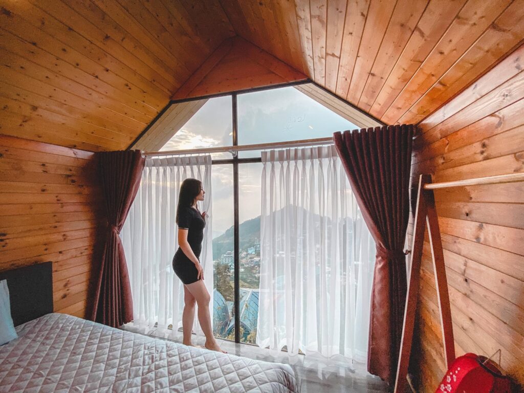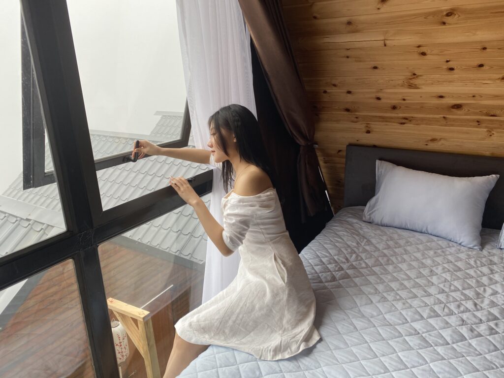 - Nhà Hana có dùng điều hòa, nhà vệ sinh khép kín, phía trước là mặt kính trong suốt