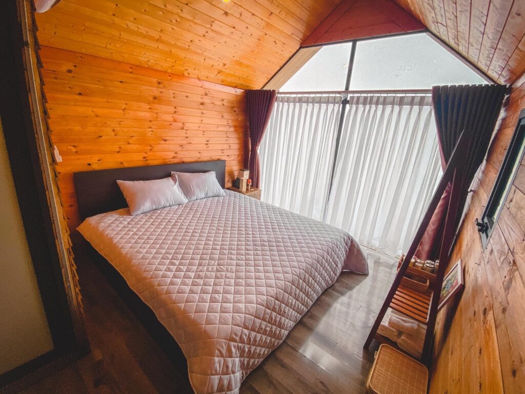 - Nhà Mori trong phòng có 1 giường 1m8x2m chăn, ga, gối, các đồ dùng vệ sinh cá nhân (khăn tắm, bàn chải và kem đánh răng, sữa tắm, dầu gội), giá để đồ, minibar (nước ngọt, bia, nước lọc, đồ ăn vặt).