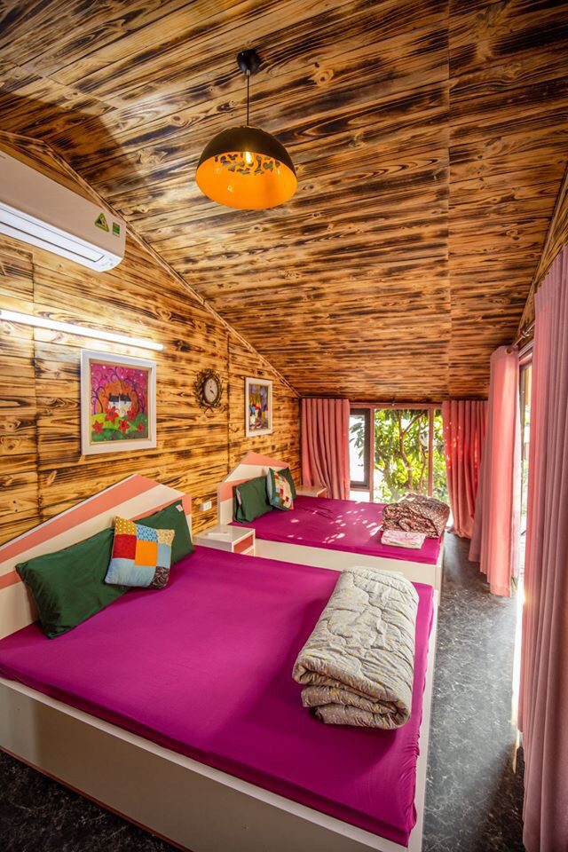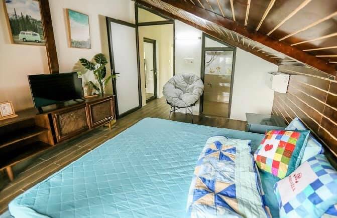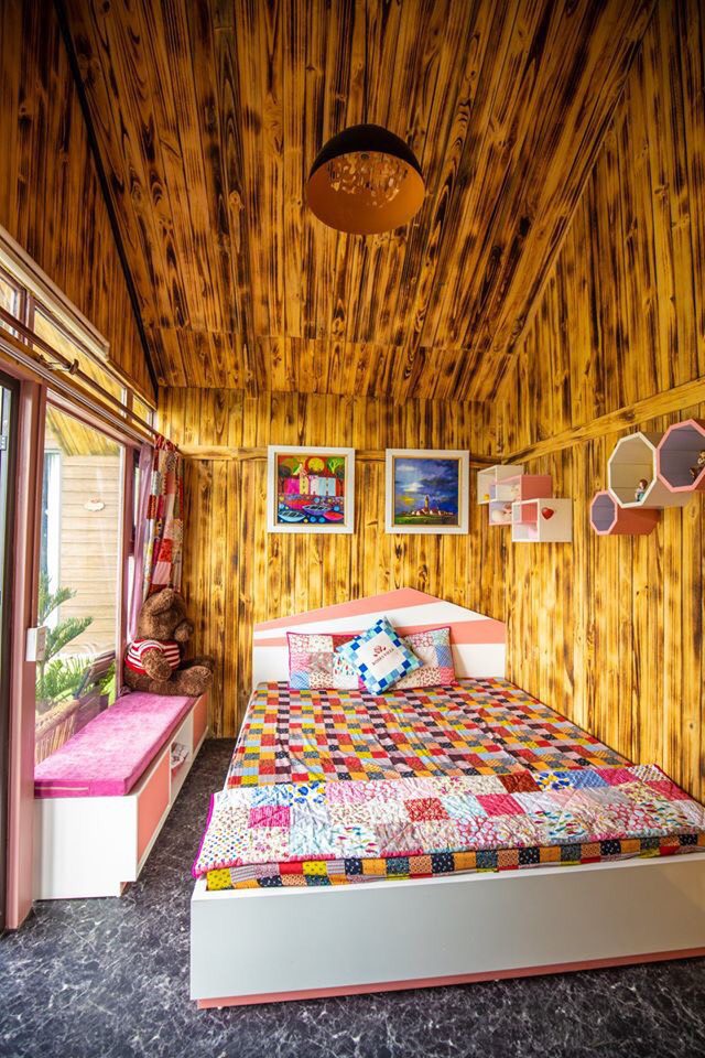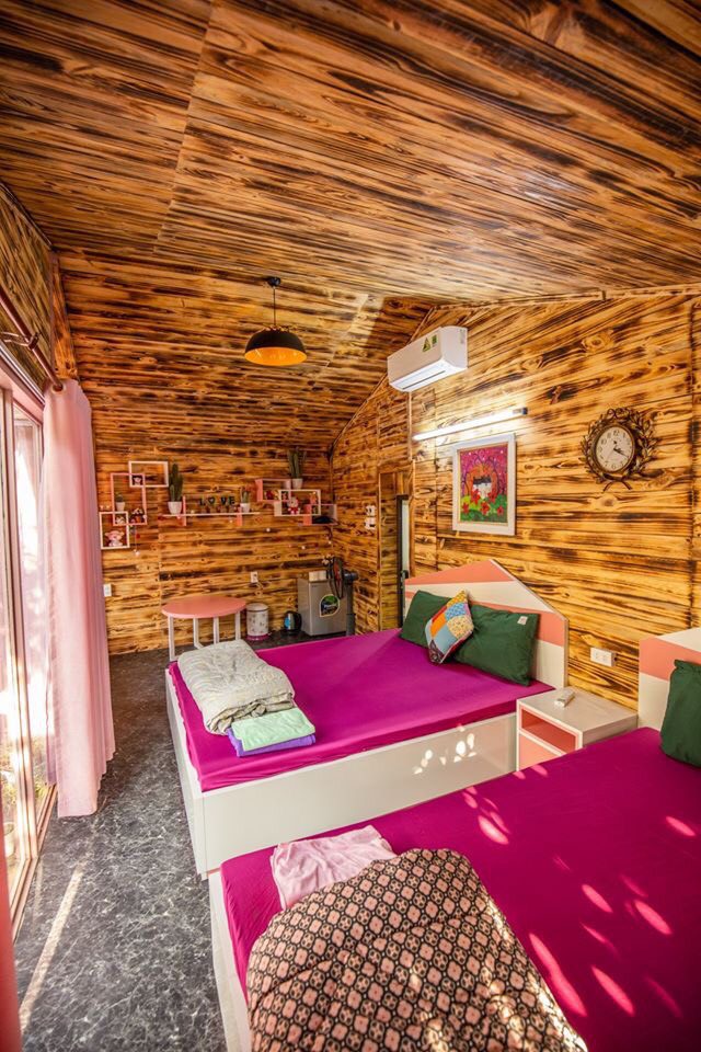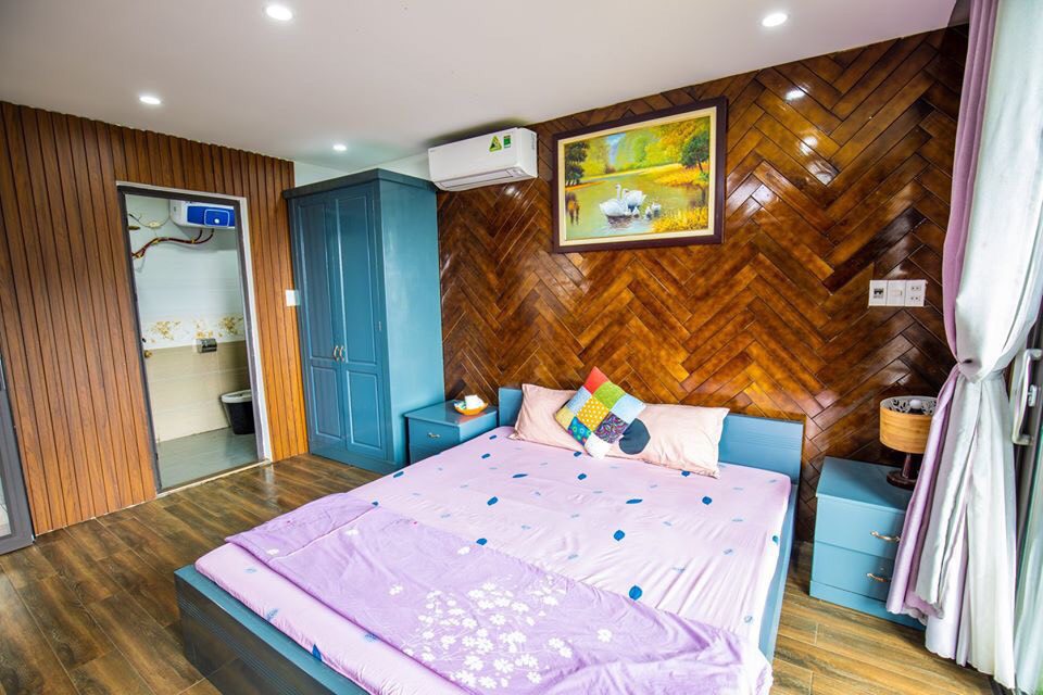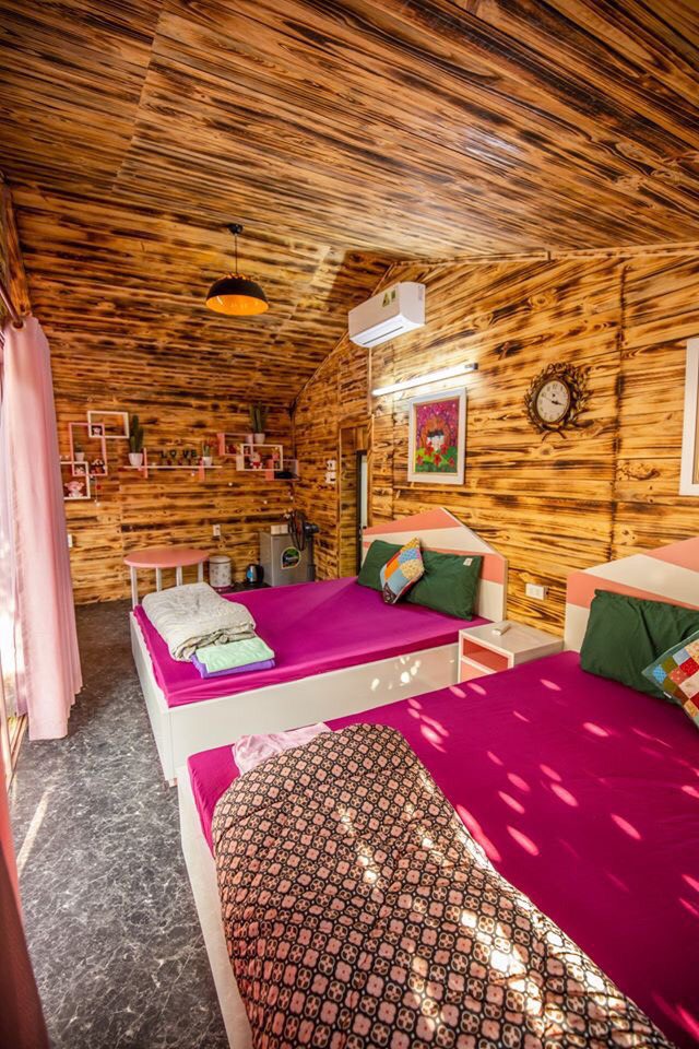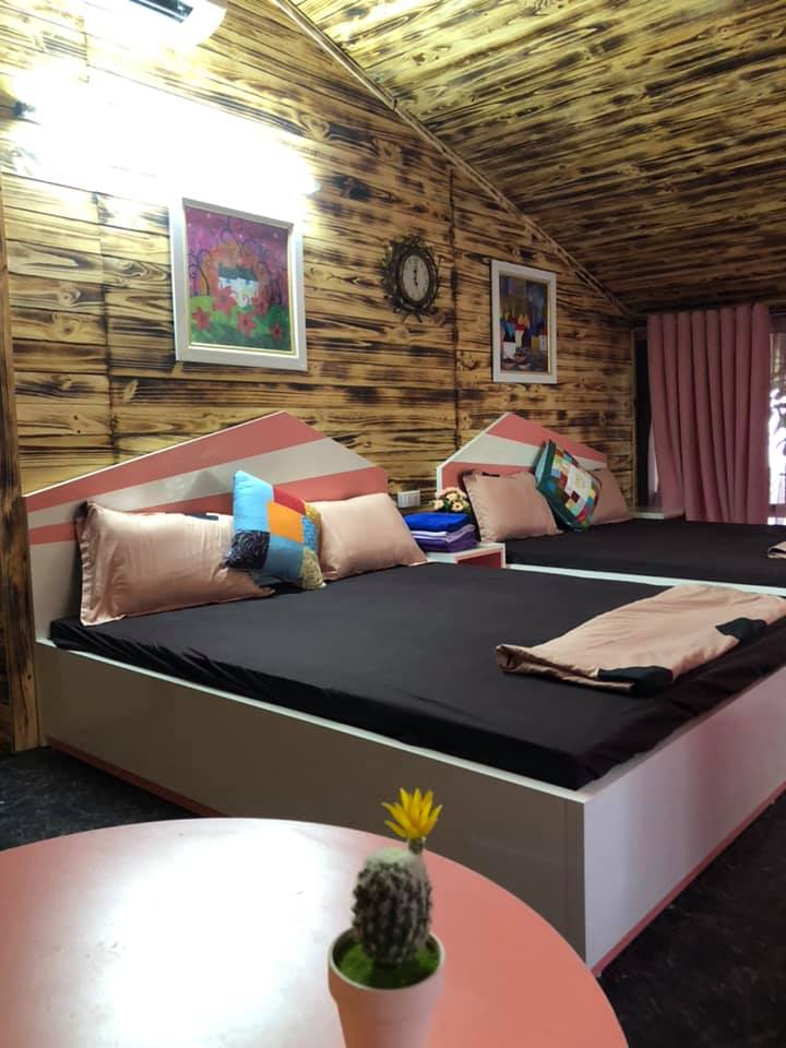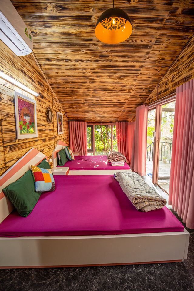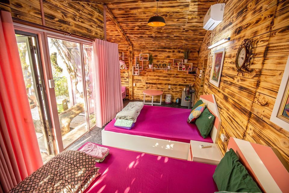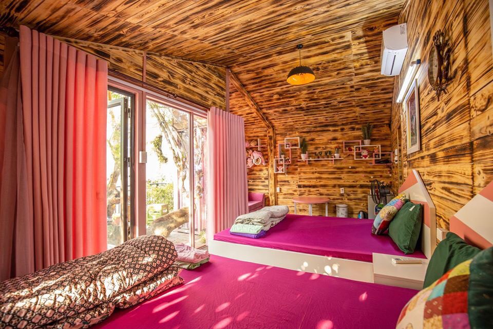 ? Căn pink gồm 02 giường 1.8*2 và 01 bộ sofa nhà vệ sinh khép kín thích hợp cho nhóm từ 2-8 người