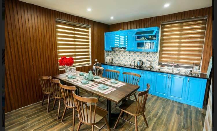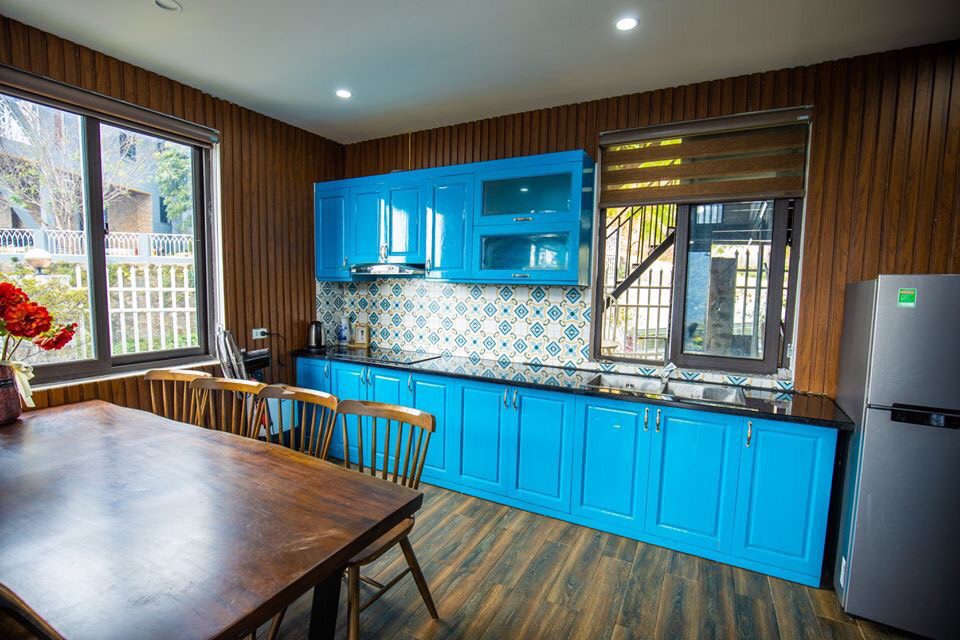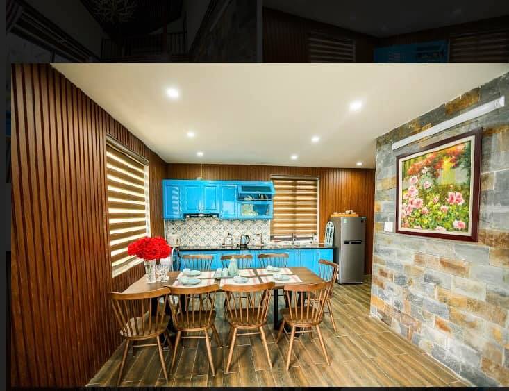 ?trong bếp có nồi lẩu,bát đũa đủ số người quy đinh,bạn được miễn phí bếp than nhưng phải tính tiền than,bạn vui lòng dọn dẹp bát đĩa và bếp sạch sẽ sau khi sử dụng (nếu không bạn có thể thuê cô quản gia và trả phí )