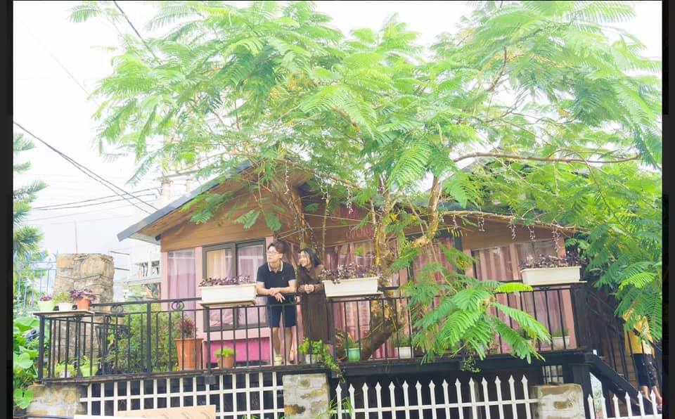 Căn nhà nằm trên cây phượng vô cùng mát mẻ và đáng yêu với 1 ban công siêu rộng tha hồ cho các bạn uống nước thưởng trà.