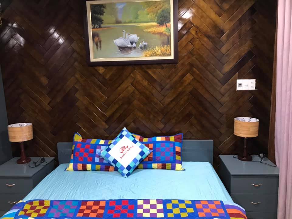 ,02 phòng ngủ trên tầng 2 gồm 01 phòng áp mái giường 1.8*2m và 01 phòng nhỏ để giường diện tích 1.6*2 và một giường phụ cạnh cầu thang. Trong nhà có bàn ăn,sopha,tủ bếp được trang bị đầy đủ hiện đại