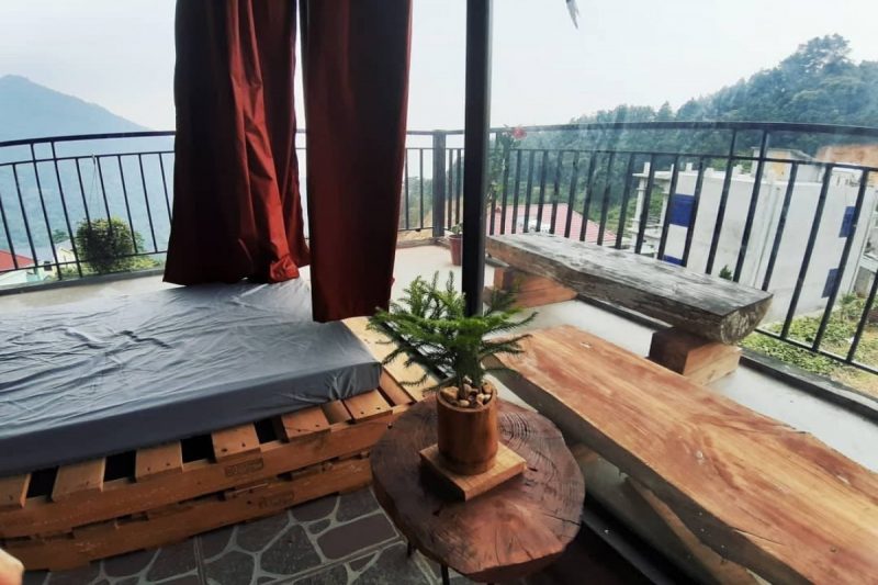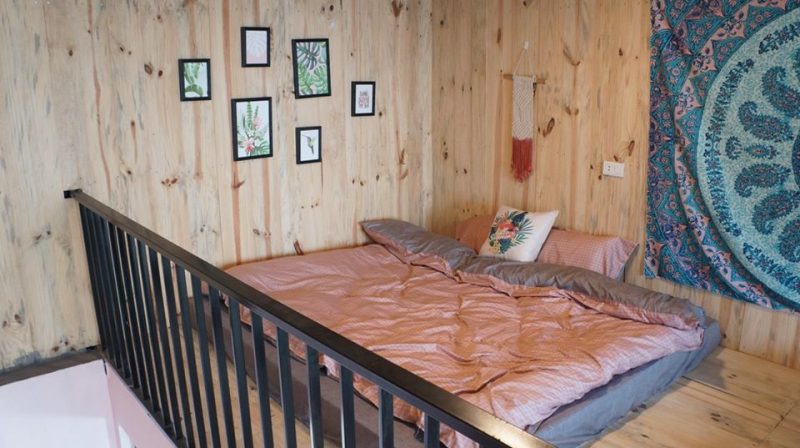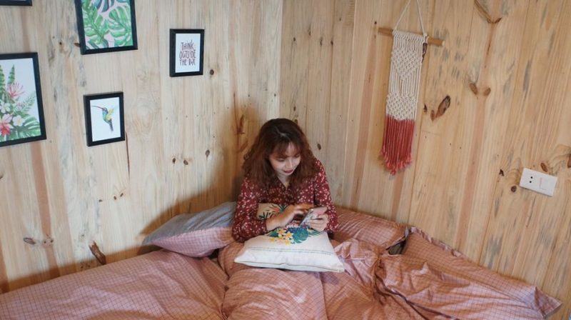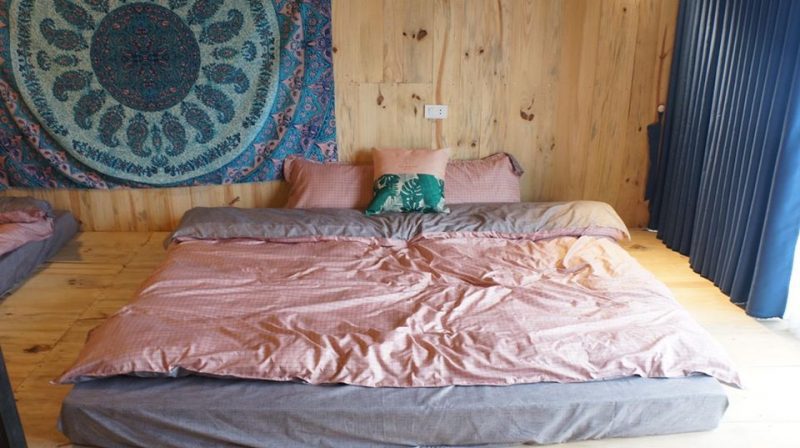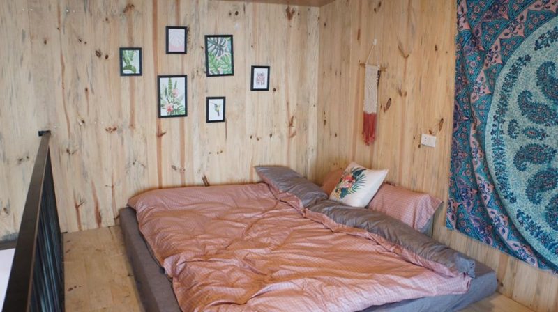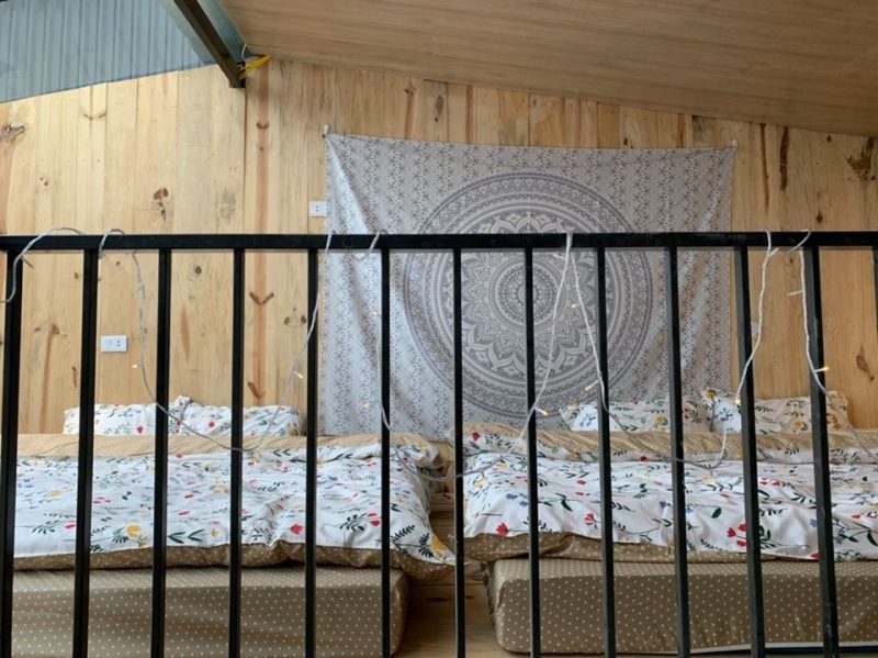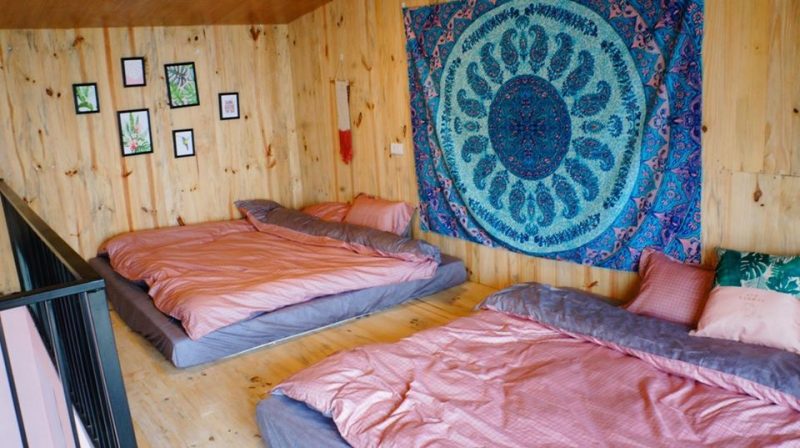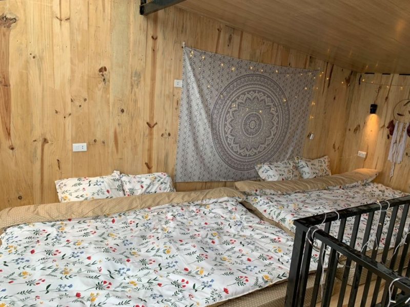 Tầng 2 là phòng ngủ được lát hoàn toàn bằng gỗ thông mộc đem lại mùi hương tự nhiên dễ chịu, phòng ngủ gồm 2 giường đôi view núi.