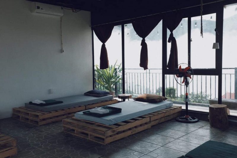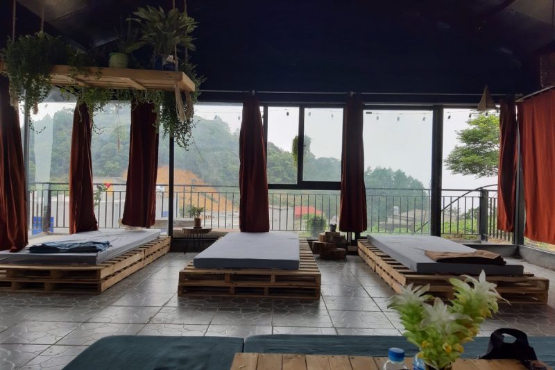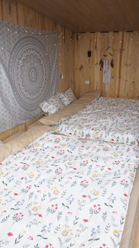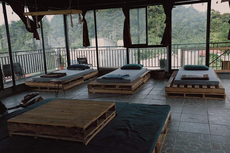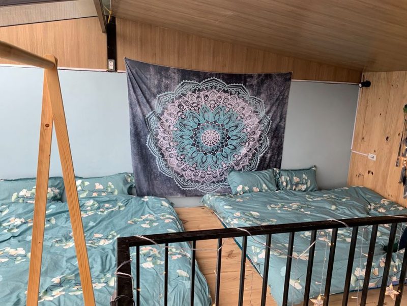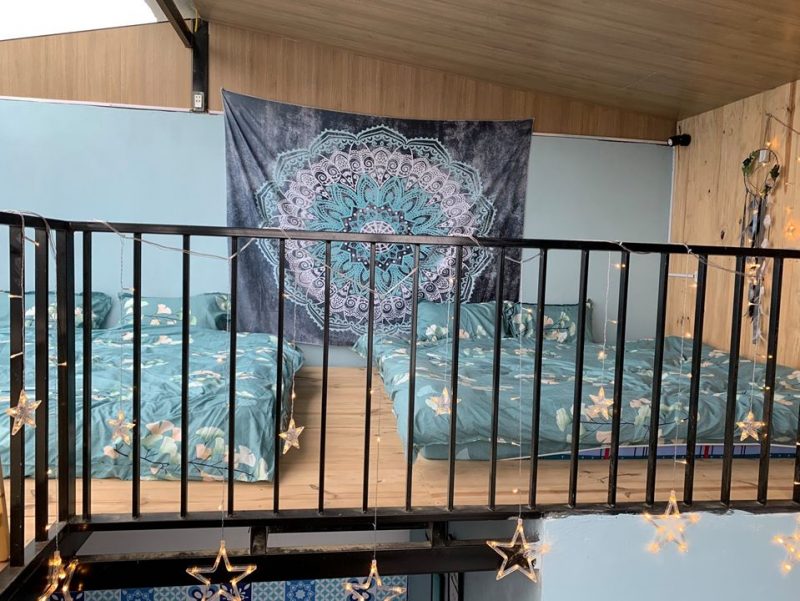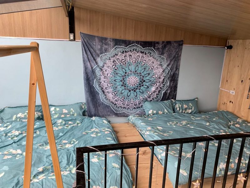 Tầng 2 là phòng ngủ được lát hoàn toàn bằng gỗ thông mộc đem lại mùi hương tự nhiên dễ chịu, phòng ngủ gồm 2 giường đôi view núi.