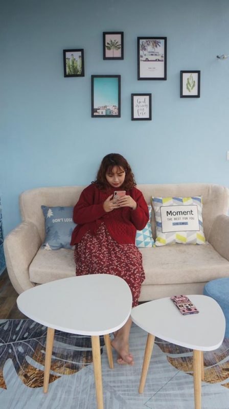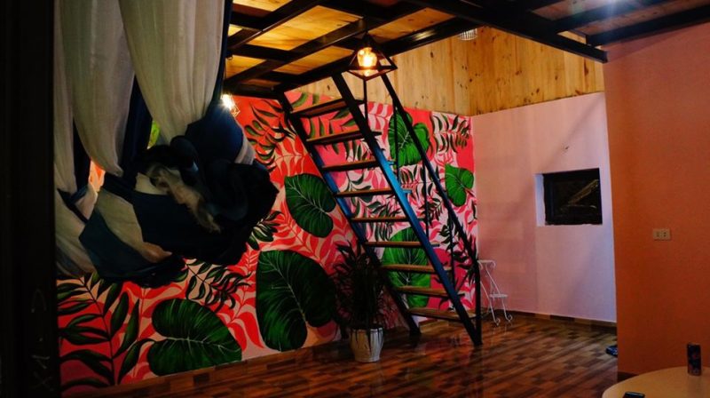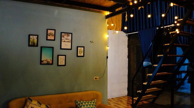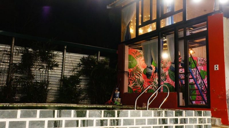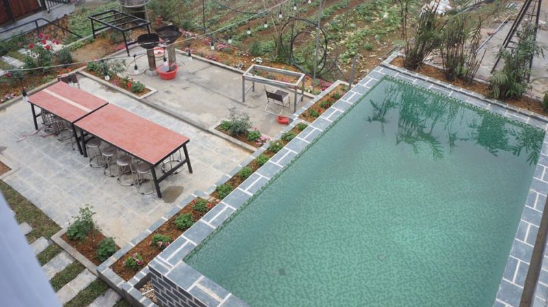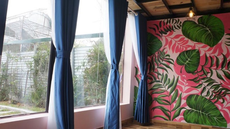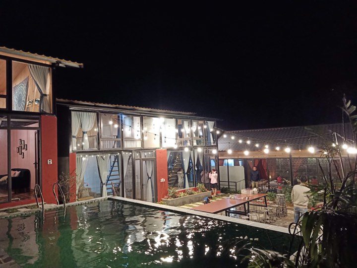 Căn nhà rộng 30m2 view bể bơi gồm 2 tầng: Tầng 1 là phòng khách, mini bar, nhà tắm và bức tường check in độc nhất vô nhị ở Tam Đảo