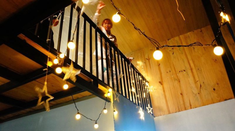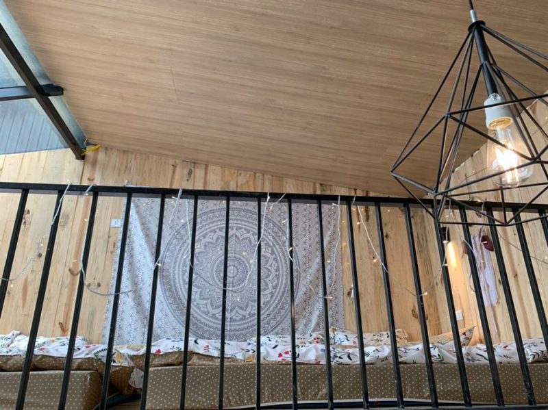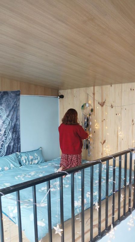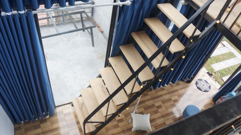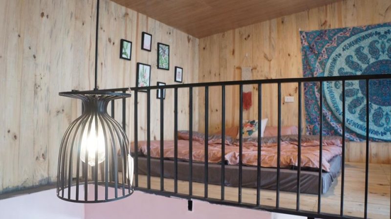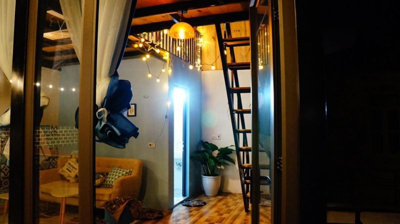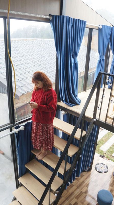 ? Tầng 1 là phòng khách và nhà tắm, tầng 2 là phòng ngủ làm bằng gỗ thông kết hợp với một nửa trần bằng kính giúp ngôi nhà ban ngày ngập tràn ánh sáng tự nhiên, ban đêm bạn sẽ được trải nghiệm cảm giác nằm trên giường tận hưởng bầu trời đầy sao cao và trong của Tam Đảo.