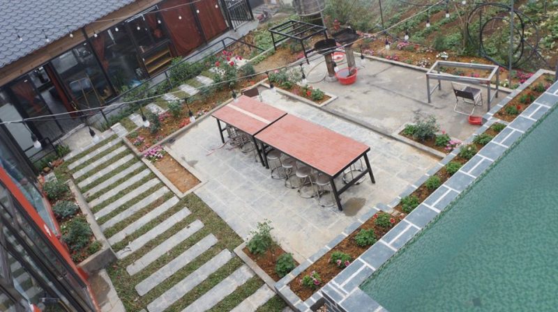 Ngoài ra Nhà Hồng còn có sân BBQ cạnh bể bơi chung với nhà Vàng, phù hợp cho từ 2-6 người
