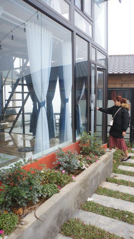 Nhà gồm 2 mặt hoàn toàn bằng kính view núi có sân nướng riêng phù hợp cho nhóm từ 2-6 người