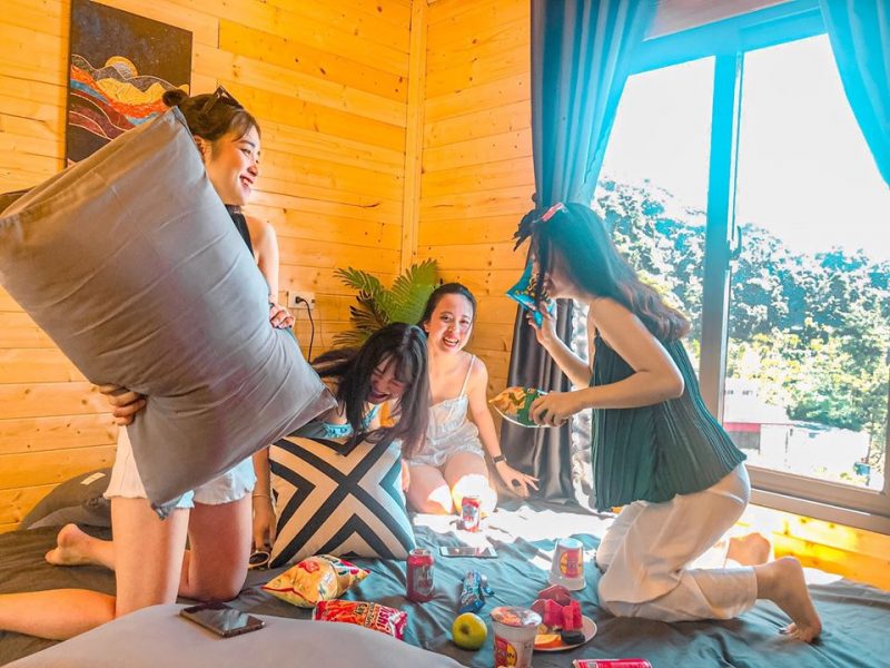 - GIá cho đoàn 2người, đi hơn phụ thu 150k/ người lớn, bé 6- 12 tuổi : 50k, bé < 6 tuổi free . Nhận tối đa không quá 6 người/ 1 căn ( 600-800)