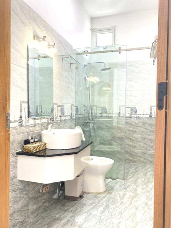 Bao gồm: 10 phòng đơn + 4 phòng đôi, tất cả đều wc khép kính từng phòng.