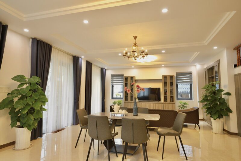 ? Tiện ích villa: Phòng khách gồm có sofa, bàn ăn, khu vực bếp được trang bị nội thất hiện đại, quý khách được sử dụng miễn phí, ngoài ra tại villa còn có đầy đủ chén , bát, lò nướng, Bbq, ly rượu vang, bàn ghế ngoài trời để quý khách có thể tổ chức tiệc nướng. Tại villa còn được trang bị máy giặt sấy cho quý khách khi cần có thể sử dụng miễn phí.