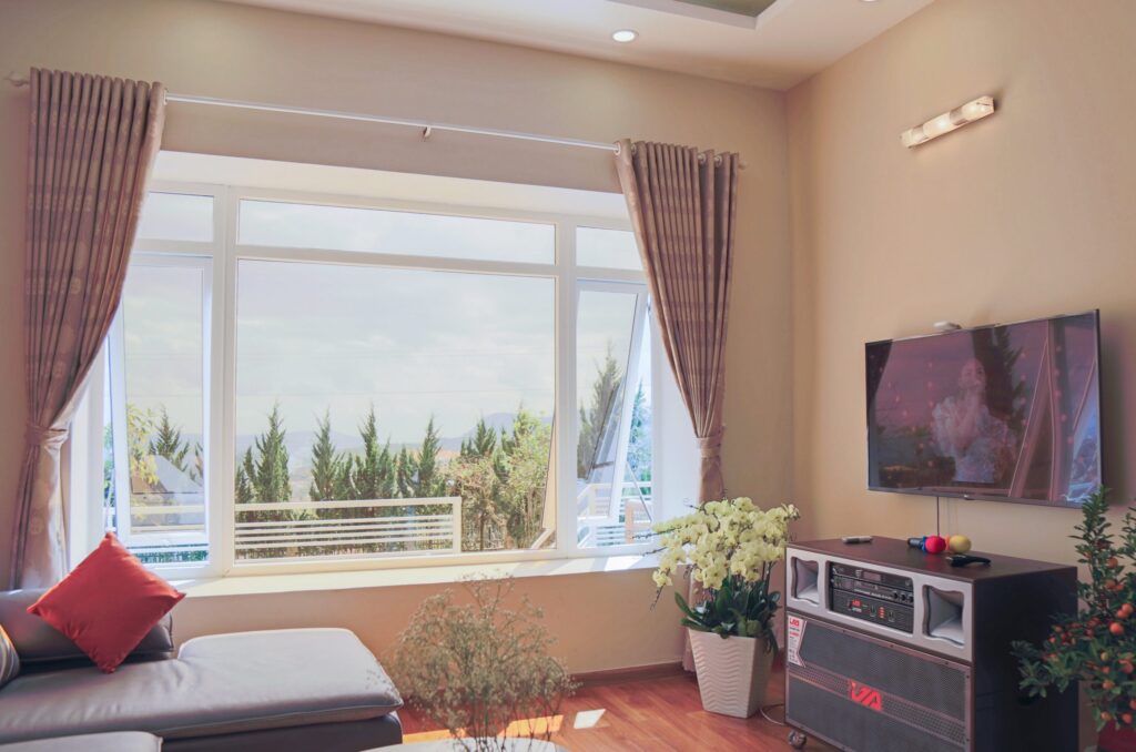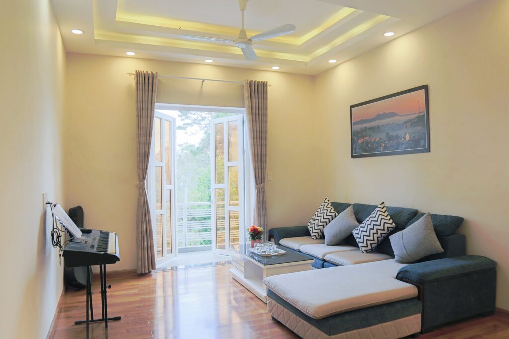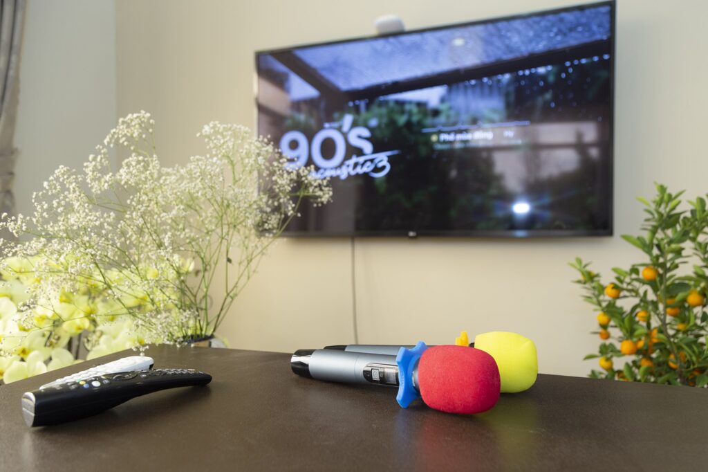 – Phòng khách đủ nhạc cụ, Smart TV 49 inch, dàn âm thanh & karaoke đời mới nhất.