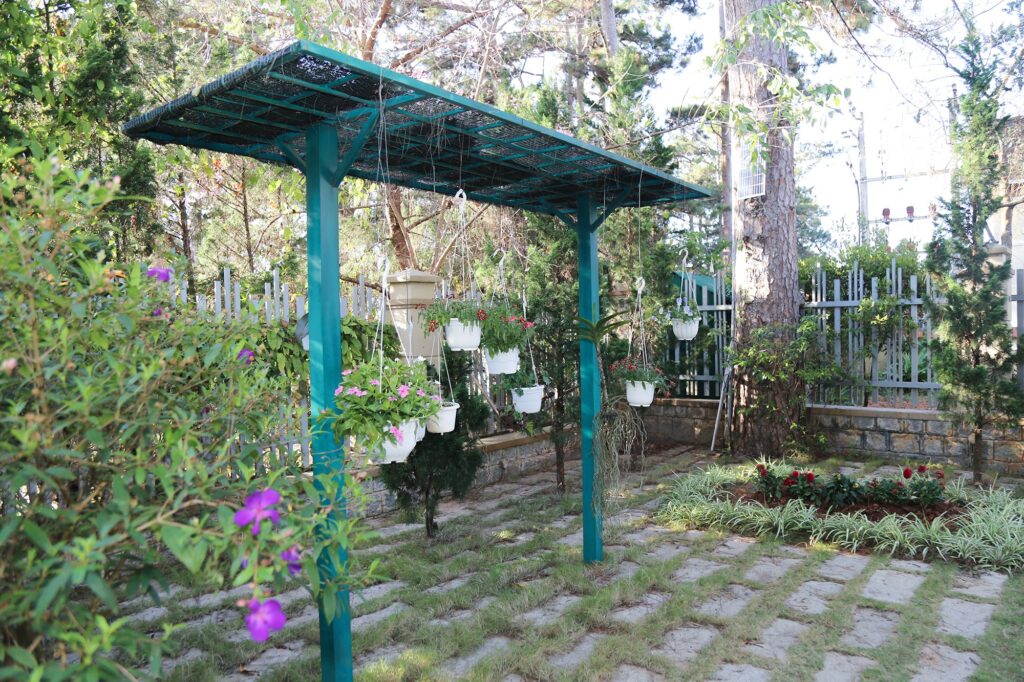 - Tổng khuôn viên rộng 1000m2 với bồn bề là cây xanh, rừng thông. Sân vườn rộng, đẹp.