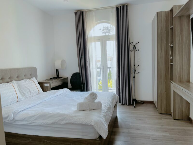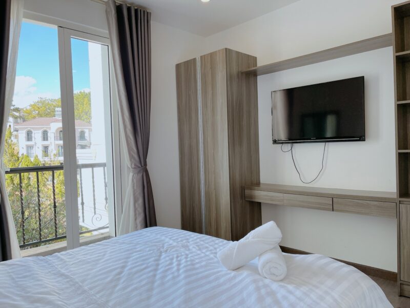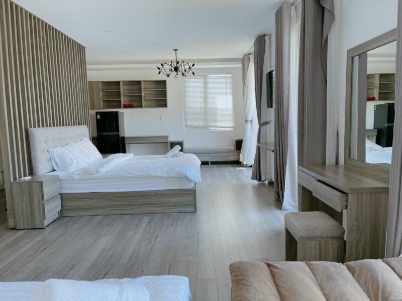 ? Thông tin Villa: được thiết kế bao gồm 5 phòng ngủ hiện đại, trong đó có 4 phòng đơn 1 giường, 1 phòng 2 giường, tất cả wc đều khép kính trong từng phòng, từ ban công phòng ngủ quý khách có thể ngắm toàn cảnh khu nghỉ dưỡng và thành phố Đà lạt.( Giao nguyên căn tiêu chuẩn 10-12 Khách)