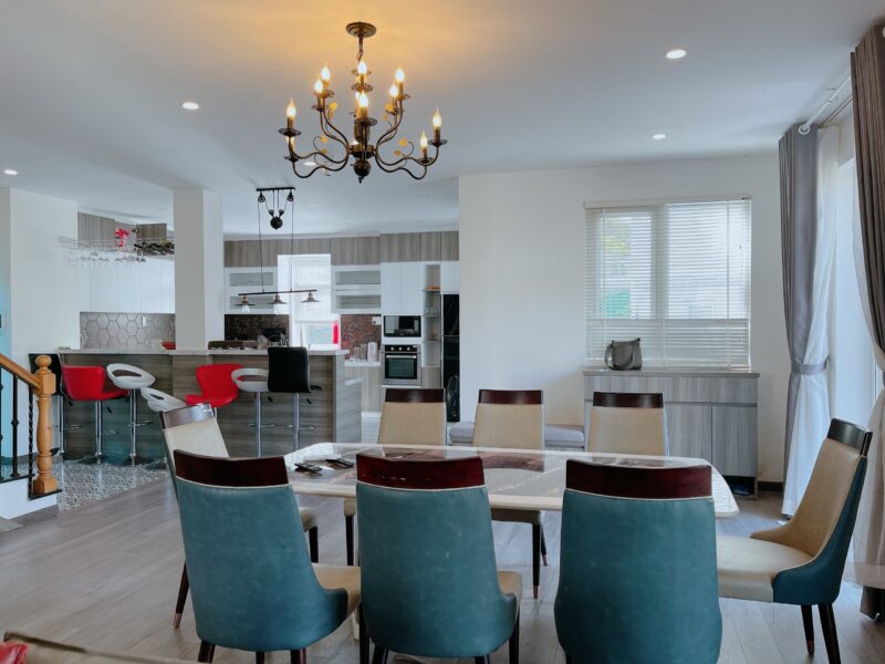 ? Tiện ích villa: Phòng khách gồm có sofa, bàn ăn, khu vực bếp được trang bị nội thất hiện đại, quý khách được sử dụng miễn phí, ngoài ra tại villa còn có đầy đủ chén , bát, lò nướng, Bbq, ly rượu vang, bàn ghế ngoài trời để quý khách có thể tổ chức tiệc nướng. Tại villa còn được trang bị máy giặt sấy cho quý khách khi cần có thể sử dụng miễn phí.