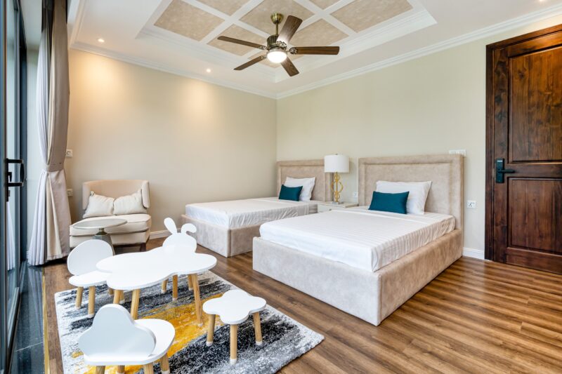 ? Tầng 2: 2 phòng đơn, 1 phòng twin + 3 wc riêng từng phòng,