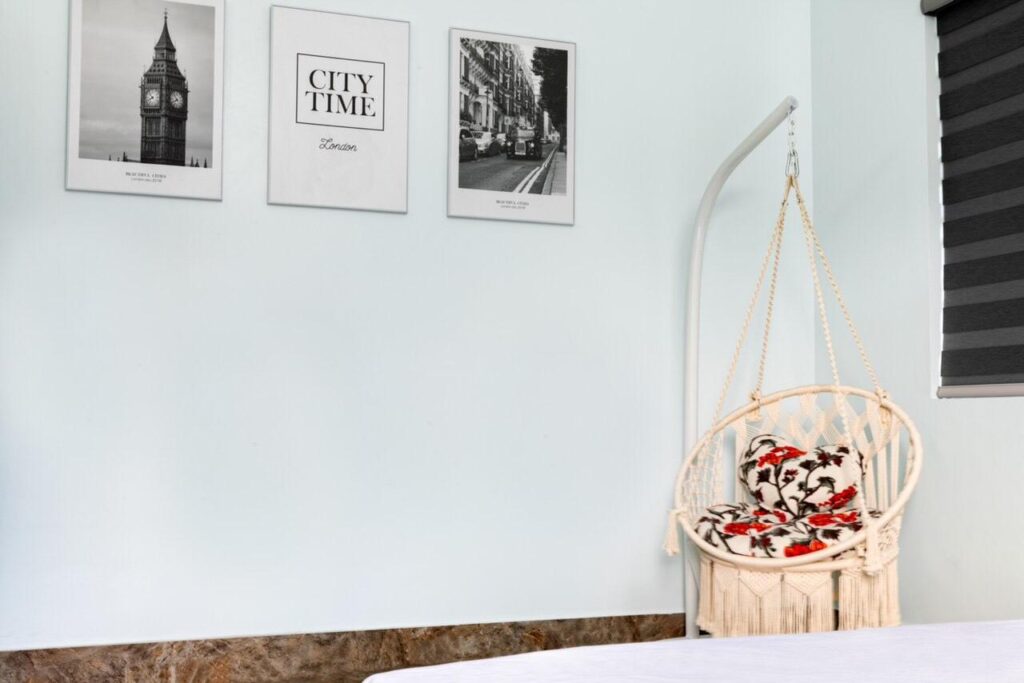 - Trang bị đầy đủ thiết bị: lò nướng, lò vi sóng, nồi lẩu, chảo, bát đũa, cốc chén, ấm siêu tốc, gia vị, tủ lạnh, chăn ga gối đệm, máy sấy tóc