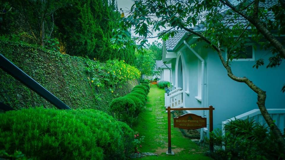 Ngoài thu hút du khách bằng nét cổ điển của lối kiến trúc Pháp thuộc còn ghi dấu ấn trong lòng khách phương xa bởi vẻ đẹp tinh khôi, dịu dàng của vườn hoa cẩm tú cầu trước ngõ. Loài hoa thơ mộng và hoang dã này gây bất ngờ với cách biến hóa màu sắc kỳ diệu, vừa biểu trưng cho lòng biết ơn và sự chân thành; vừa đại diện cho sự thịnh vượng và sung túc; giúp cho gia chủ luôn thành công và may mắn. Đến đây người yêu hoa sẽ được trải nghiệm không gian sống hoàn toàn mới lạ trong biệt thự cổ xưa tiện nghi và sang trọng, thả hồn trong những nhành hoa đẹp lãng mạn và kiêu sa ấy.