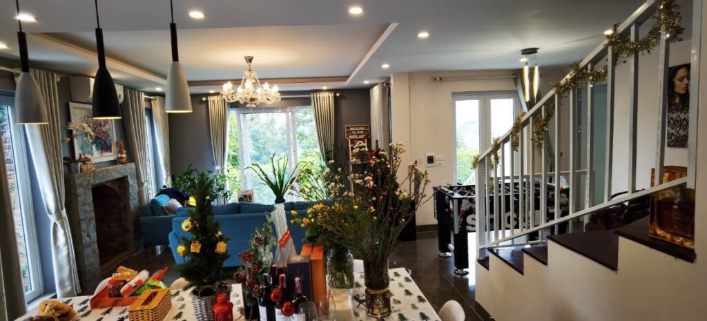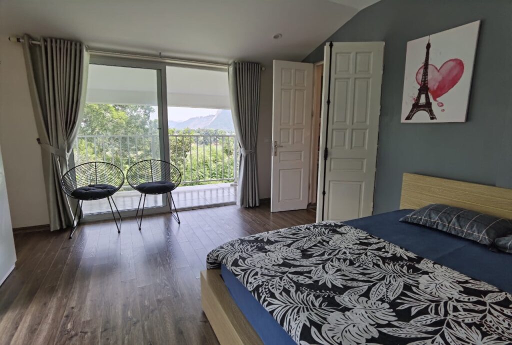Căn biệt thự xinh xắn, hiện đại gồm 4 phòng ngủ với nội thất châu Âu trên núi, thuộc huyện Lương Sơn, tỉnh Hoà Bình. Chỉ cách Hà nội 39km, khoảng 50 phút lái xe, du khách có thể tìm cho mình một không gian yên tĩnh với cảm giác thanh bình, thư giãn của làng quê Pháp tại Việt Nam . Căn biệt thự có đầy đủ nội thất hiện đại để mang đến cho bạn sự tiện nghi nhất.