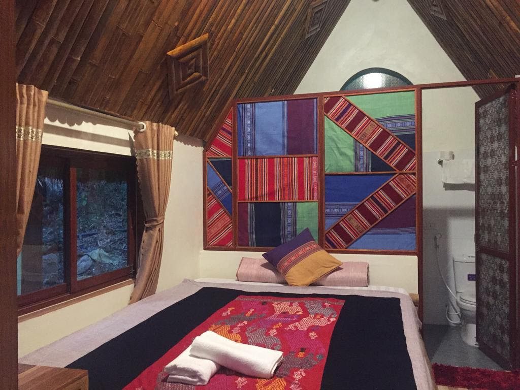 Phòng dorm trên nhà sàn truyền thống có đệm riêng đầy đủ chăn đệm, rộng rãi và thoáng đãng, mặc dù không có điều hòa nhưng với chất liệu gỗ cũng đủ làm bạn cảm thấy mát lạnh.