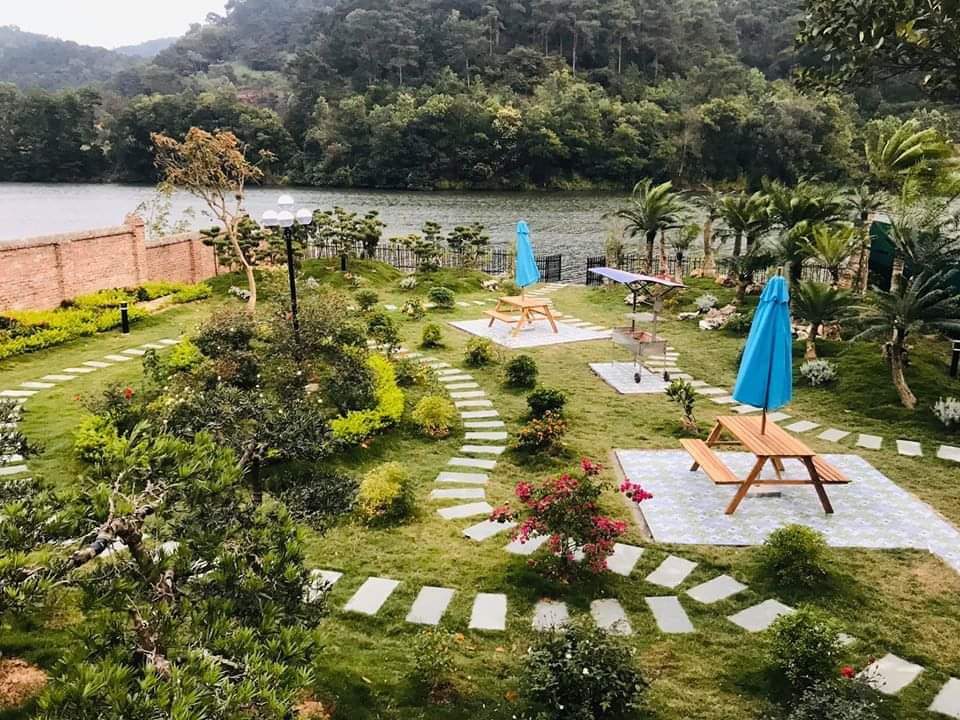 - Sân vườn cảnh quan rộng 1500m2, nằm bên bờ hồ Đồng Đò