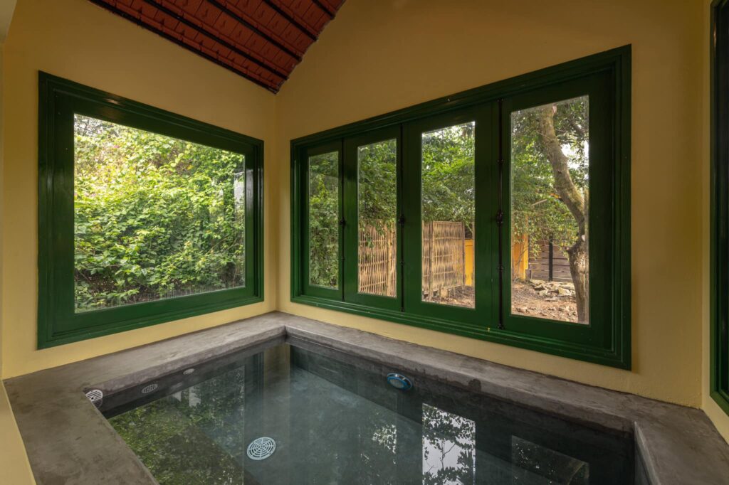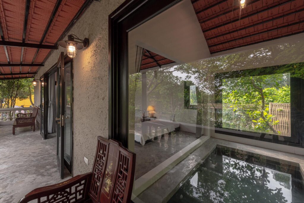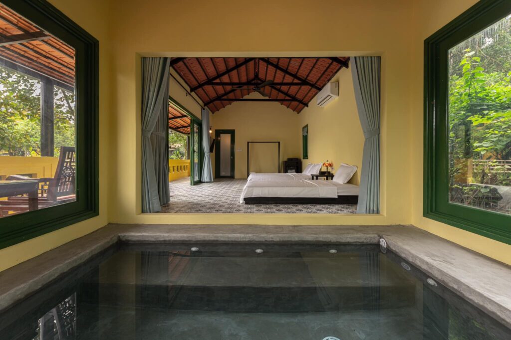? Đặc biệt trong mỗi Bungalow có bể sục nước nóng trong nhà phục vụ từ hè xuyên đông