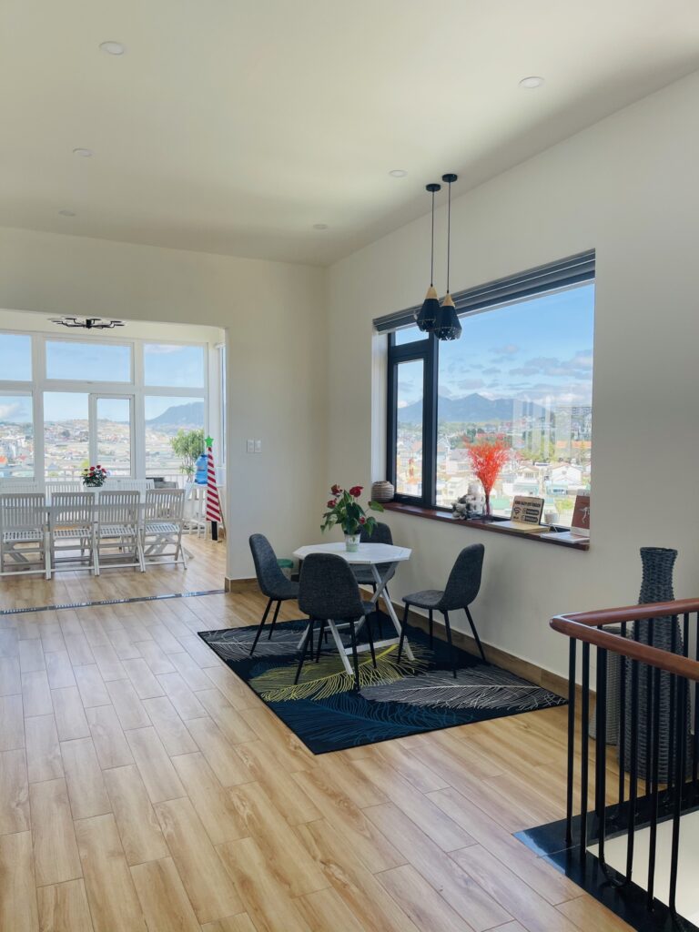- Nhiều góc chill với view đồi núi + thành phố về đêm