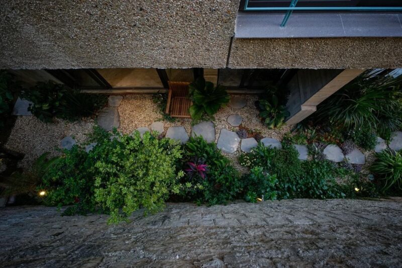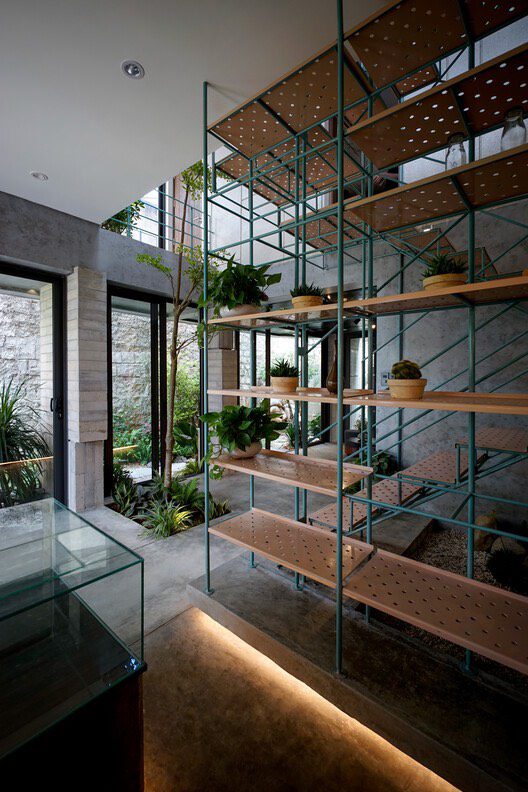 - Phòng khách thiết kế thông thoáng và tràn ngập ánh sáng với giếng trời độc đáo.