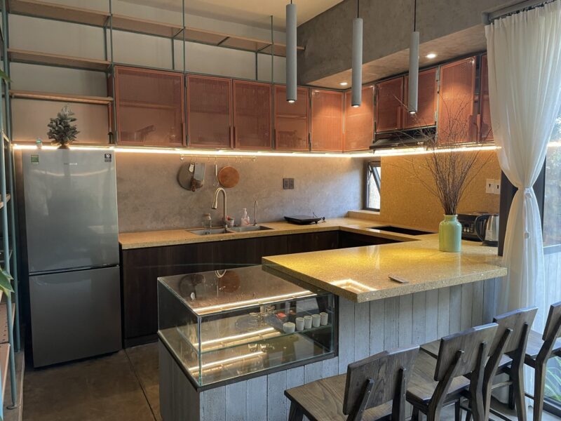 - Phòng bếp hiện đại, trang bị đủ trang thiết bị nấu nướng và chén đũa, dĩa, tủ lạnh…
