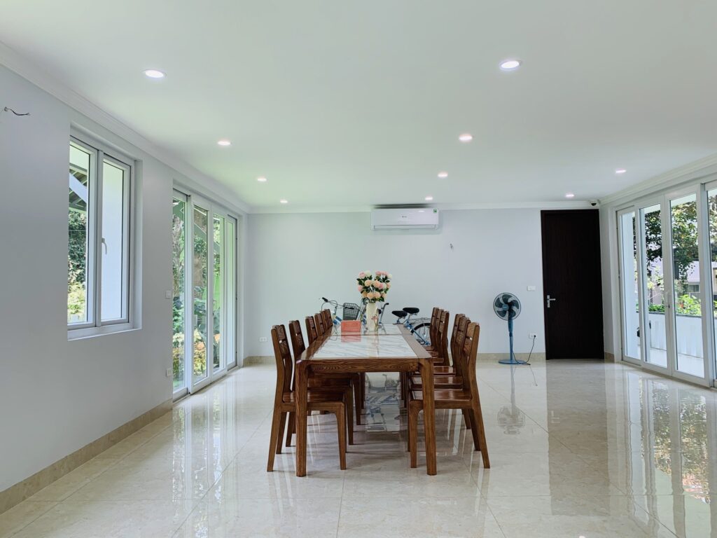 - 5 nhà vệ sinh; phòng khách lớn; phòng ăn và phòng bếp đủ tiện nghi