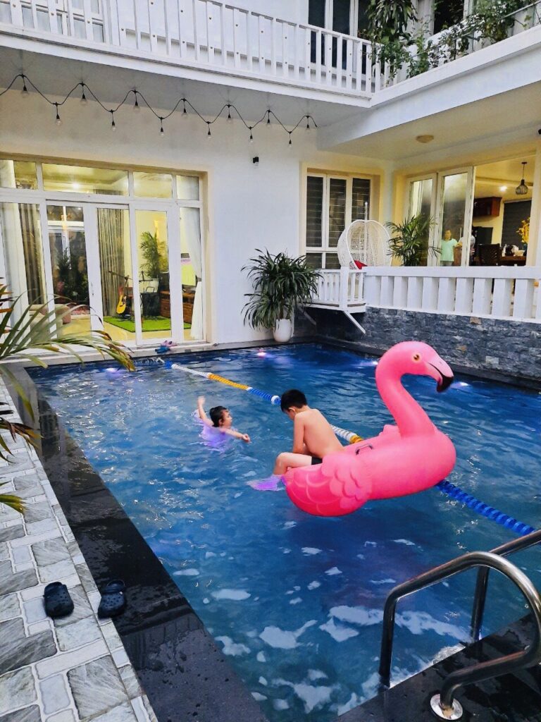 Tiêu chuẩn Villa tiêu chuẩn ở được 12 người, thêm người phụ thu như sau: Từ người thứ 13 sẽ tính 250.000/1 người (cả trẻ em và người lớn). Tối đa có thể ở được 20 người