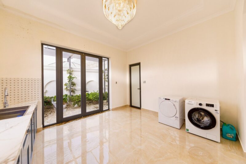 ? Bếp đầy đủ dụng cụ nấu ăn. Có máy giặt,sấy.