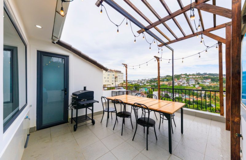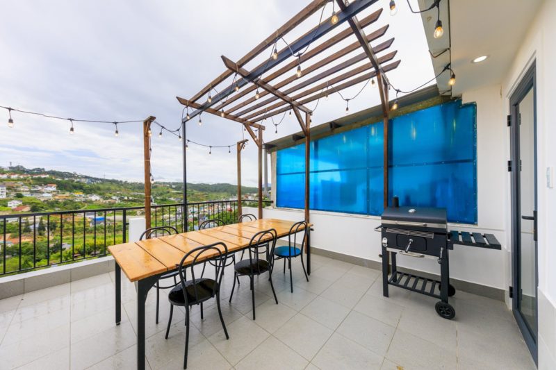 – Sân thượng setup riêng cho khách tổ chức tiệc BBQ.