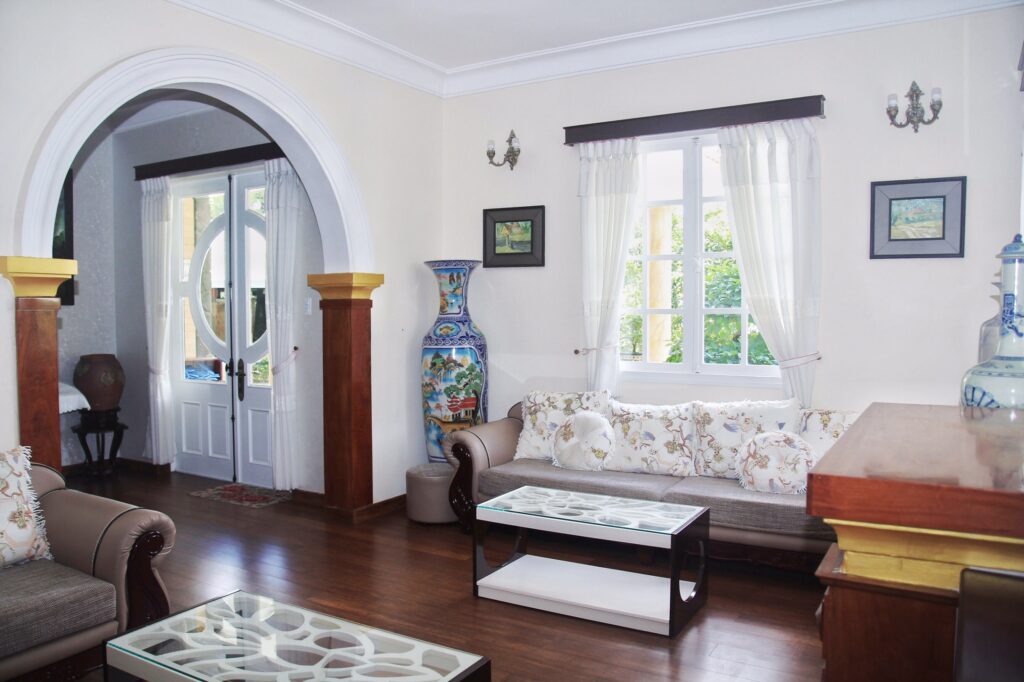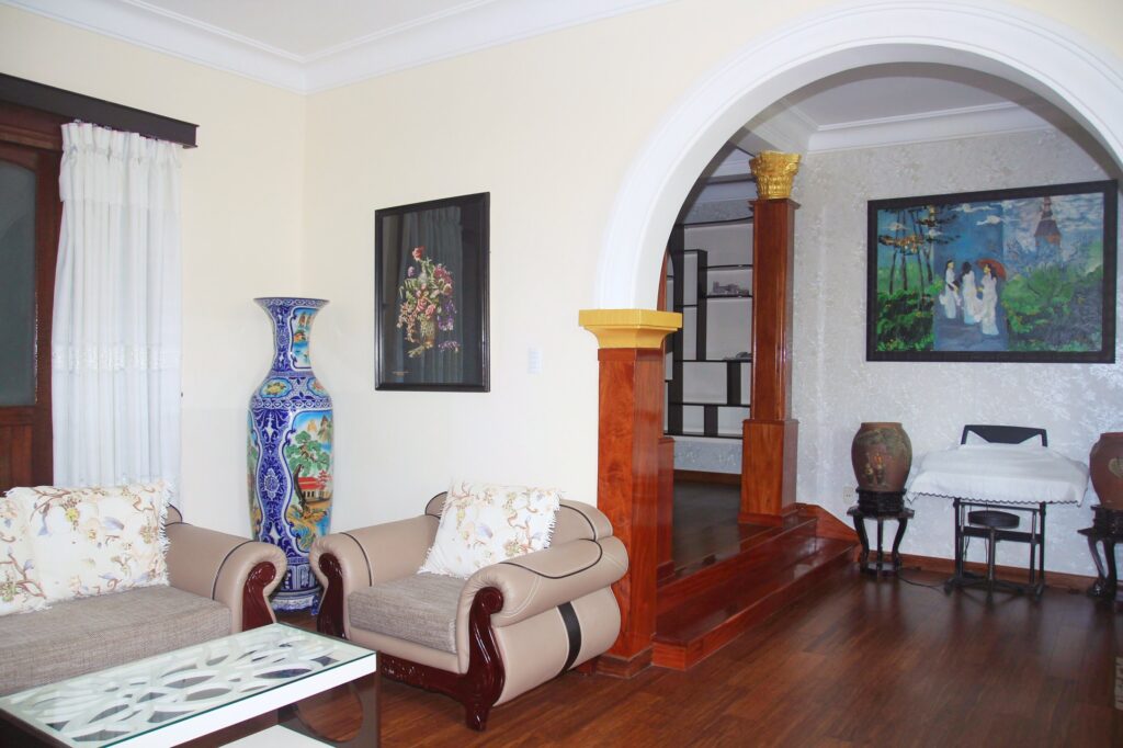 – Thiết kế: Nhà thiết kế với kiến trúc pháp cổ, khuôn viên sân vườn rộng rãi với 2 phòng đôi, 5 phòng đơn và 1 phòng áp mái các phòng đều có của sổ view thoáng, phòng khách, bếp, khu BBQ
