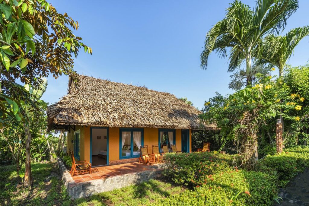 Lấy cảm hứng từ thiên nhiên, Mekong Lodge được xây dựng hoàn toàn từ nguyên liệu tự nhiên dân dã với mái lá, nội thất tre, gỗ…. Mỗi bungalow được thiết kế theo phong cách nhà dân của địa phương. Mang đậm nét văn hóa của vùng Đồng bằng Sông Cửu Long.
