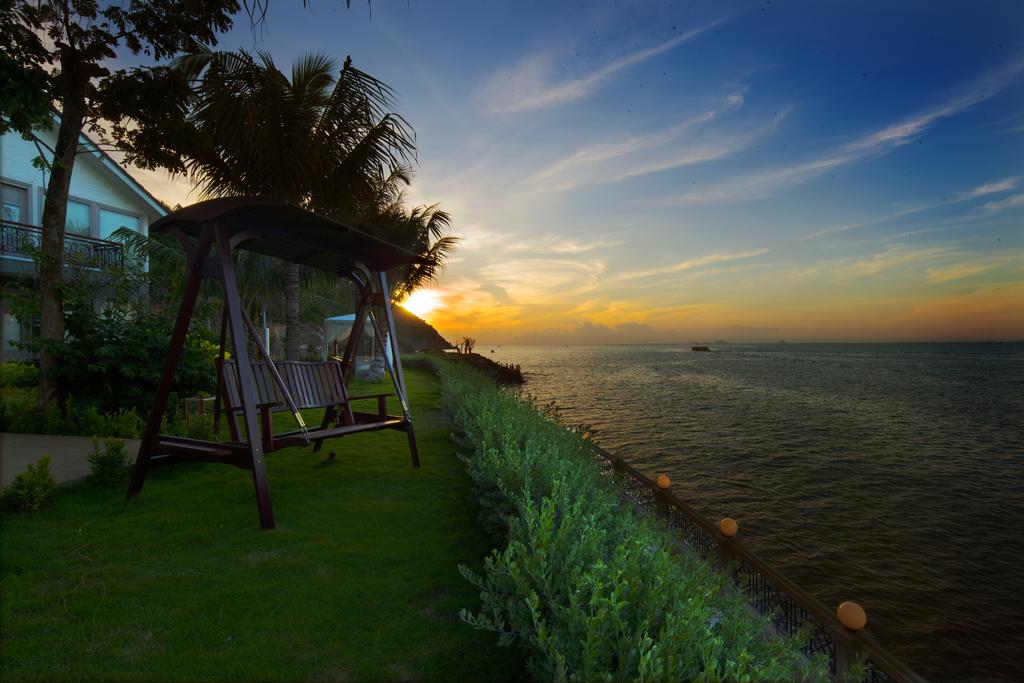 Tất cả các biệt thự đều có tầm nhìn hướng biển tuyệt đẹp và được phủ bởi một màu xanh tự nhiên của cây xanh, đem lại một không gian sống hòa trộn vào thiên nhiên và thân thiện với môi trường. Trước các biệt thự, về phía biển, có con đường đi dạo ngắm biển, có không gian cỏ xanh để tổ chức tiệc ngoài trời, có bến đậu ca nô. Sunset Villas chỉ cách Cảng Hòn Tằm 10 phút đi ca nô, thuận lợi đi lại.