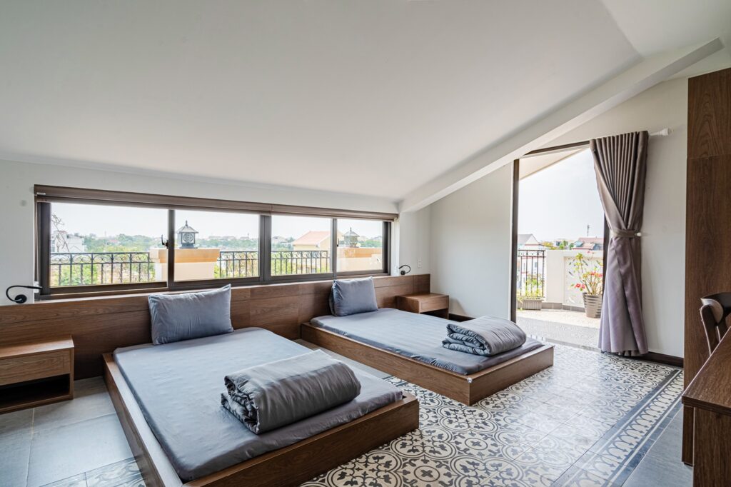 - 2 phòng double, 2 phòng twin, 3 phòng triple, 1 phòng dorm