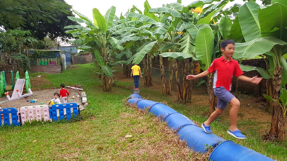 – Khu vực sân chơi vận động ngoài trời với các thiết bị thú vị cho bé
