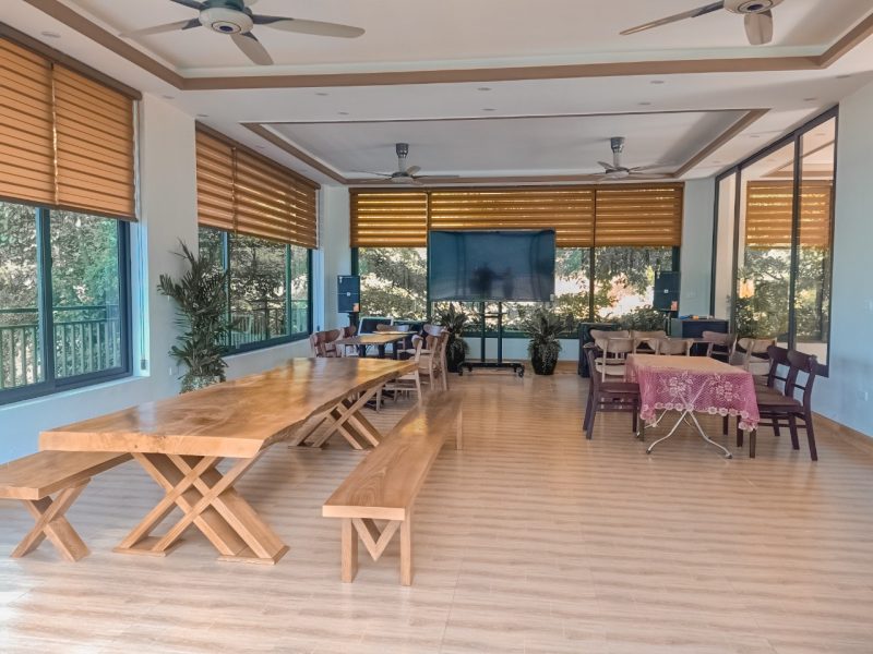 - Khu ăn bbq có bàn ghế, view hồ mát mẻ (mưa gió có khu ăn uống rộng rãi trong nhà).