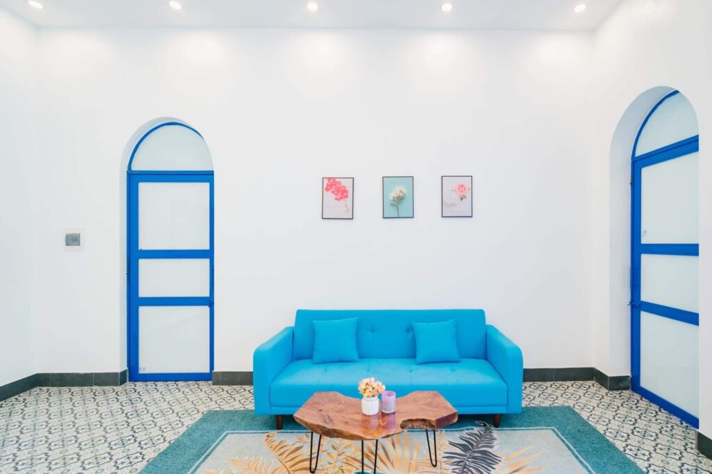 – 1 phòng ngủ 1 giường đôi 2m x2m ( 4 người) + kê 1 đệm đôi ( 4 người). Phòng khách với tone xanh bắt mắt, 1 sofa bed, 1 bếp nấu trong nhà, 1 bàn ăn trong nhà, 1 wc bên ngoài sử dụng chung cho 2 phòng ngủ.