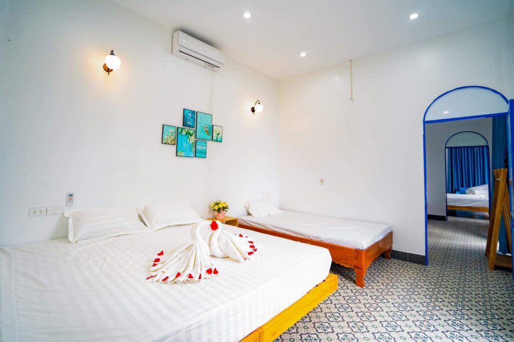 – 1 phòng ngủ rộng : 1 giường đôi + 1 sofa bed + 1 đệm kê thêm (4 người), Wc khép kín.