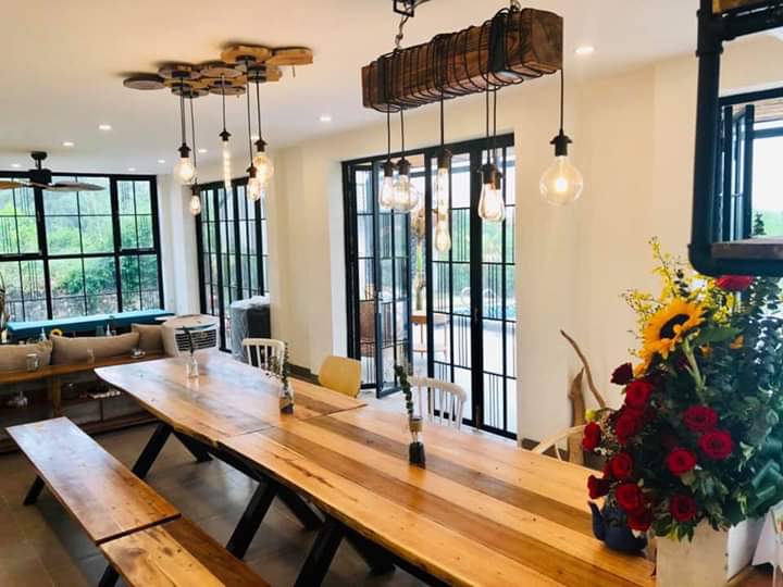 Villa với khuôn viên 2600m2, sân cỏ rộng và nhiều cây xanh mát , căn nhà được thiết kế theo phong cách Rustic. Nếu bạn muốn có những bức ảnh đẹp cùng bạn bè và những người thân yêu không nên bỏ qua các góc sống ảo đẹp ở đây.