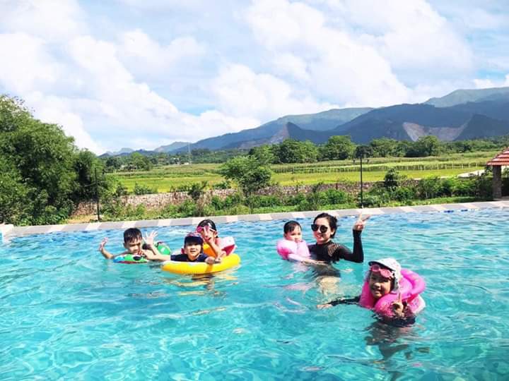 – Bể bơi chiều dài 10m x5m , được làm sạch bằng công nghệ điện phân muối nên quý khách có thể hoàn toàn yên tâm về chất lượng nước của bể bơi, không lo hại da, hỏng tóc do clo. Chỗ sâu nhất 1m5( quý khách vui lòng mặc đồ bơi và tắm tráng trước khi xuống bể).