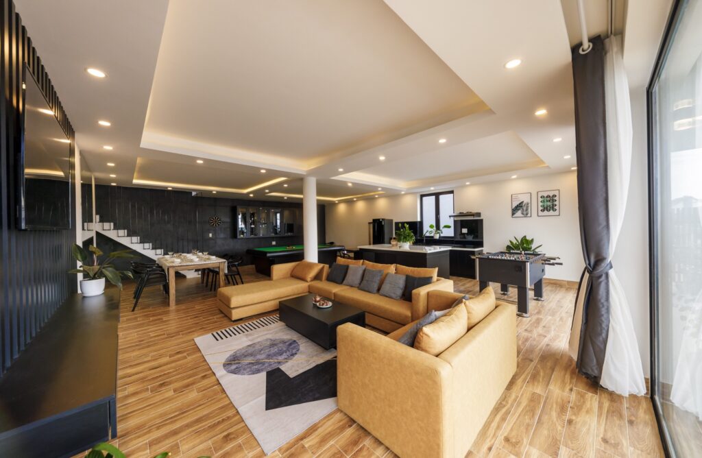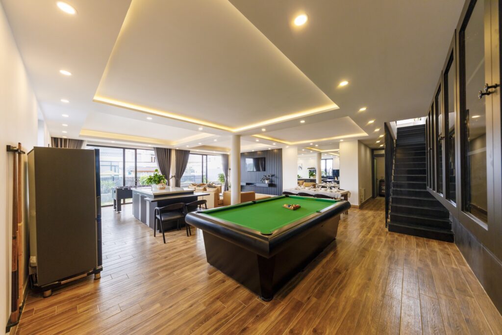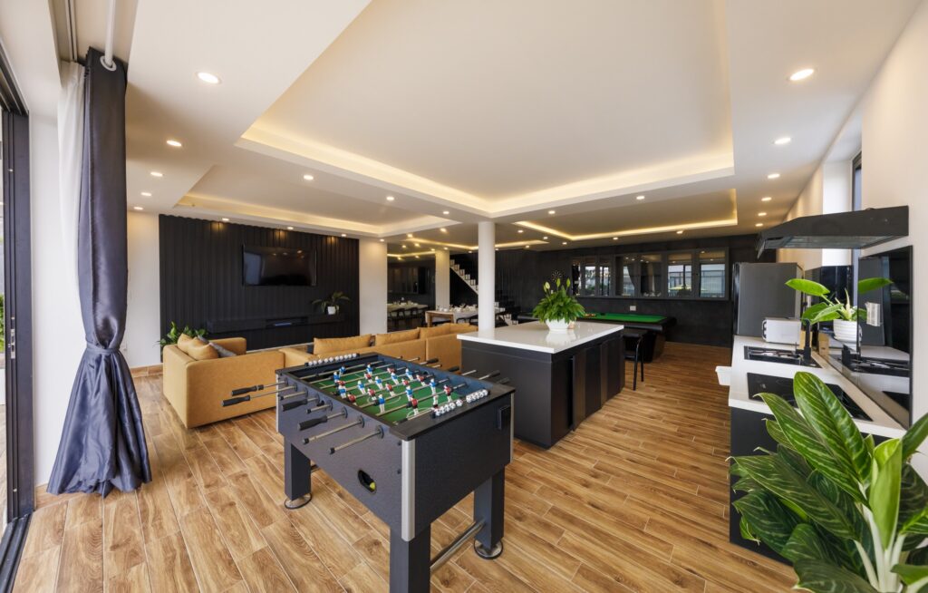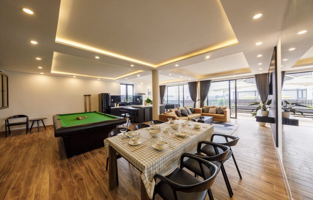 - Phòng giải trí sinh hoạt chung cực chill được trang bị đầy đủ các tiện ích như bida, bi lắc, phóng phi tiêu, không gian xem phim, hát karaoke, chơi video game và boardgame