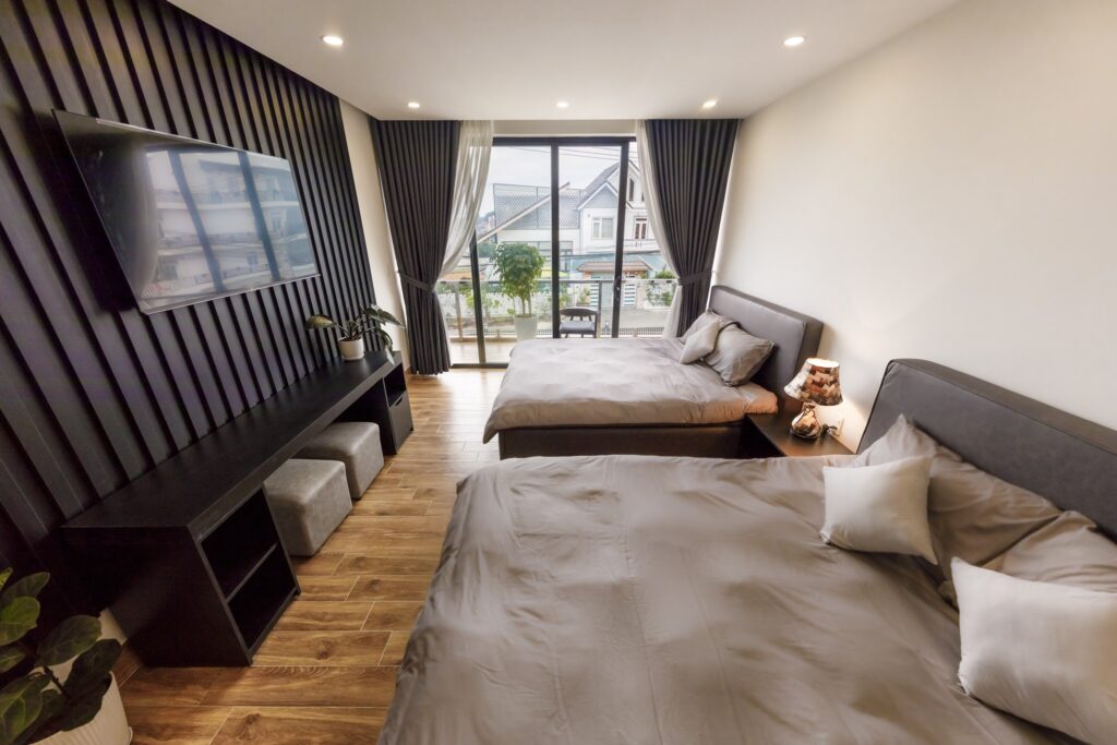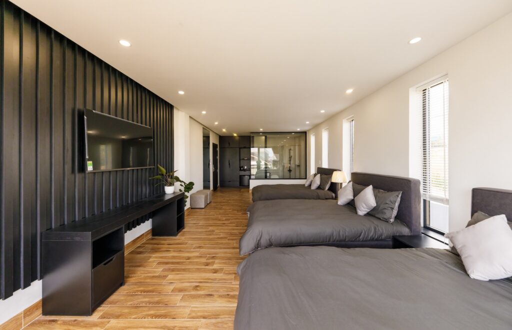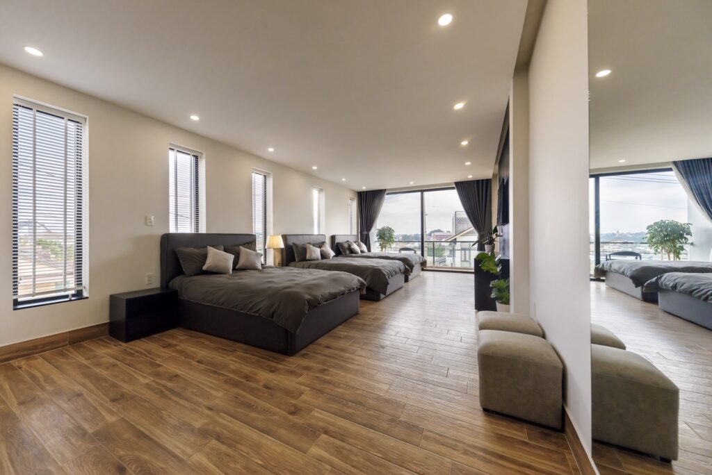 - 5 phòng ngủ (3 phòng 1 giường lớn + 1 phòng 2 giường lớn + 1 phòng 3 giường lớn)